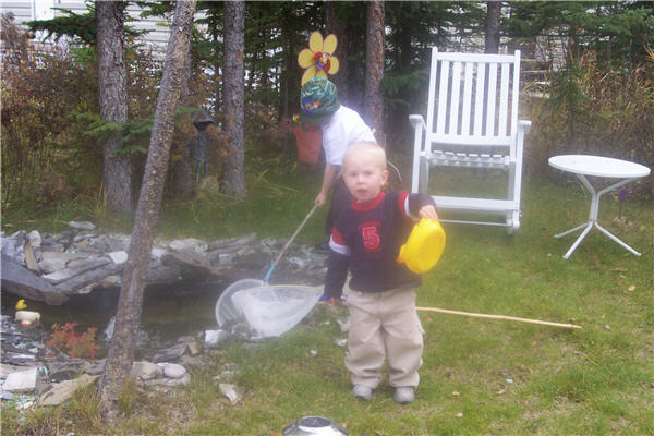 (Matthew & Sammy fishing in the pond)